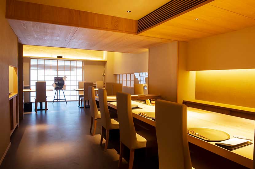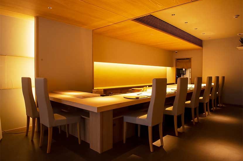 店内は、カウンタ―席とテーブル席を備えた和モダンなつくり。一見、敷居が高いように見えますが、ランチ営業ではリーズナブルに本格寿司コースもご提供。ご夫婦やご友人と、日常の会食から記念日・デート・接待まで、幅広いシーンでご利用頂けます。もちろん、お一人様でのお食事も大歓迎。お気軽に足をお運びください。